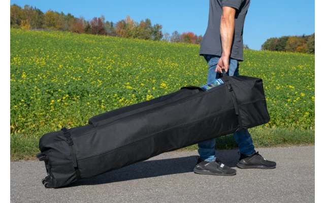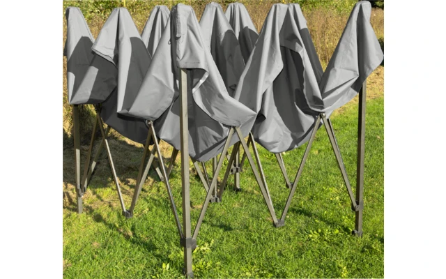 Durch das Faltgestänge sehr schnell auf- und abgebaut.
